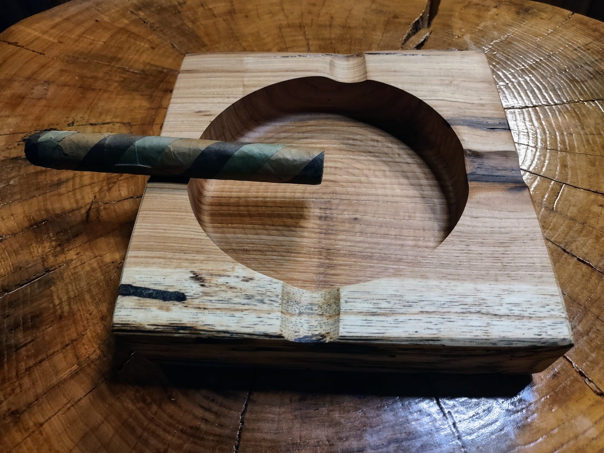 This 272024RO1 ashtray is expertly crafted from gorgeous red oak, measuring 8 x 8 x 1.5 inches. Its sturdy design provides a safe and stylish place to rest your cigars. Enhance your smoking experience with this elegant and practical ashtray.