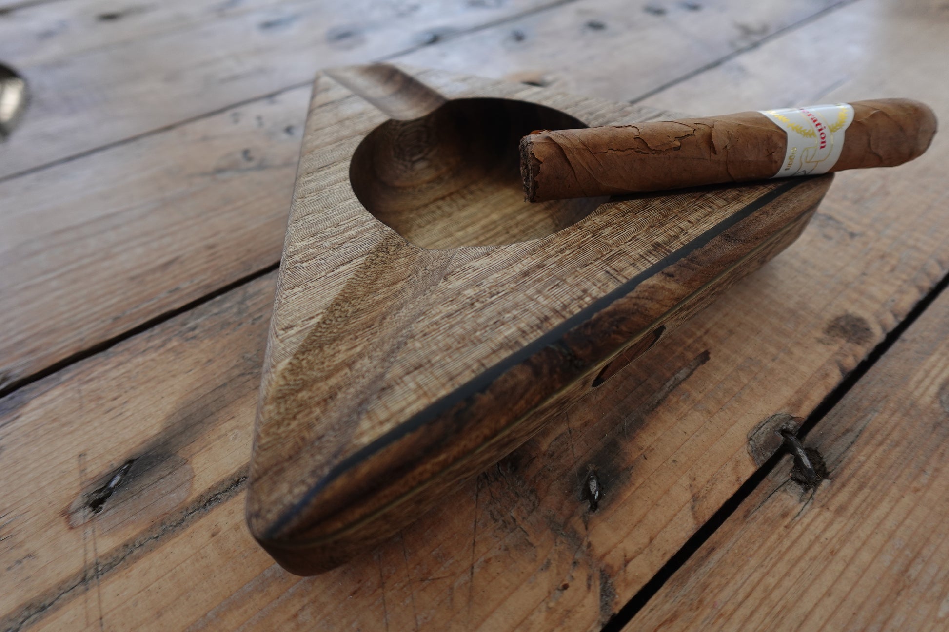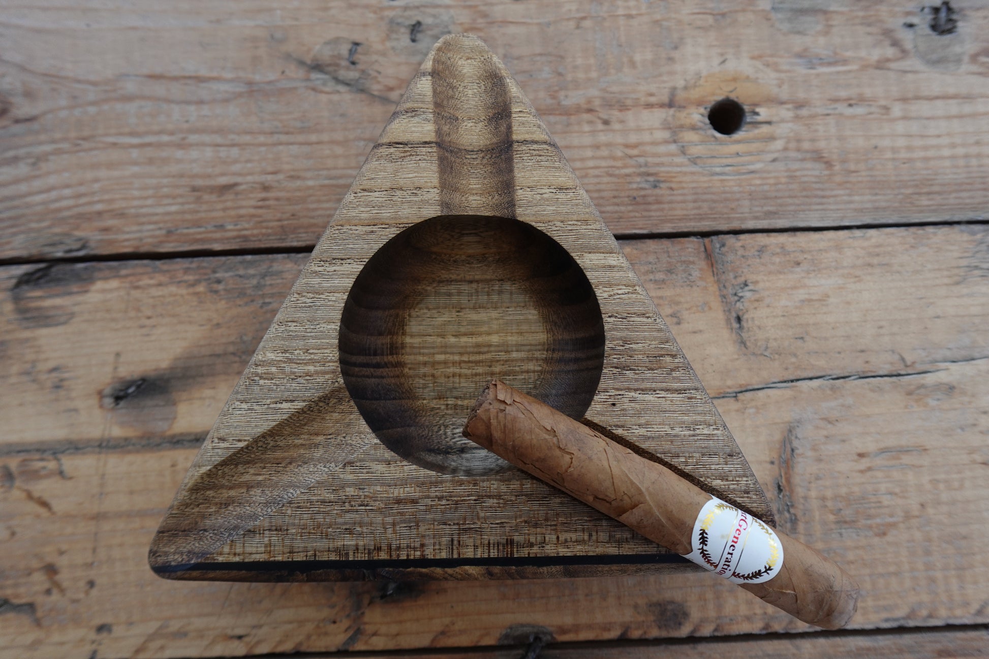 This Spalted Indiana Ash Triangle Ashtray is expertly crafted by cigar enthusiasts to meet the needs of fellow smokers. Made from spalted Indiana ash wood, it features a distinctive natural pattern and a durable hard oil finish that enhances its longevity and resistance to heat. Its triangular design offers a stable and elegant resting place for cigars, combining functionality with refined craftsmanship for a superior smoking experience.