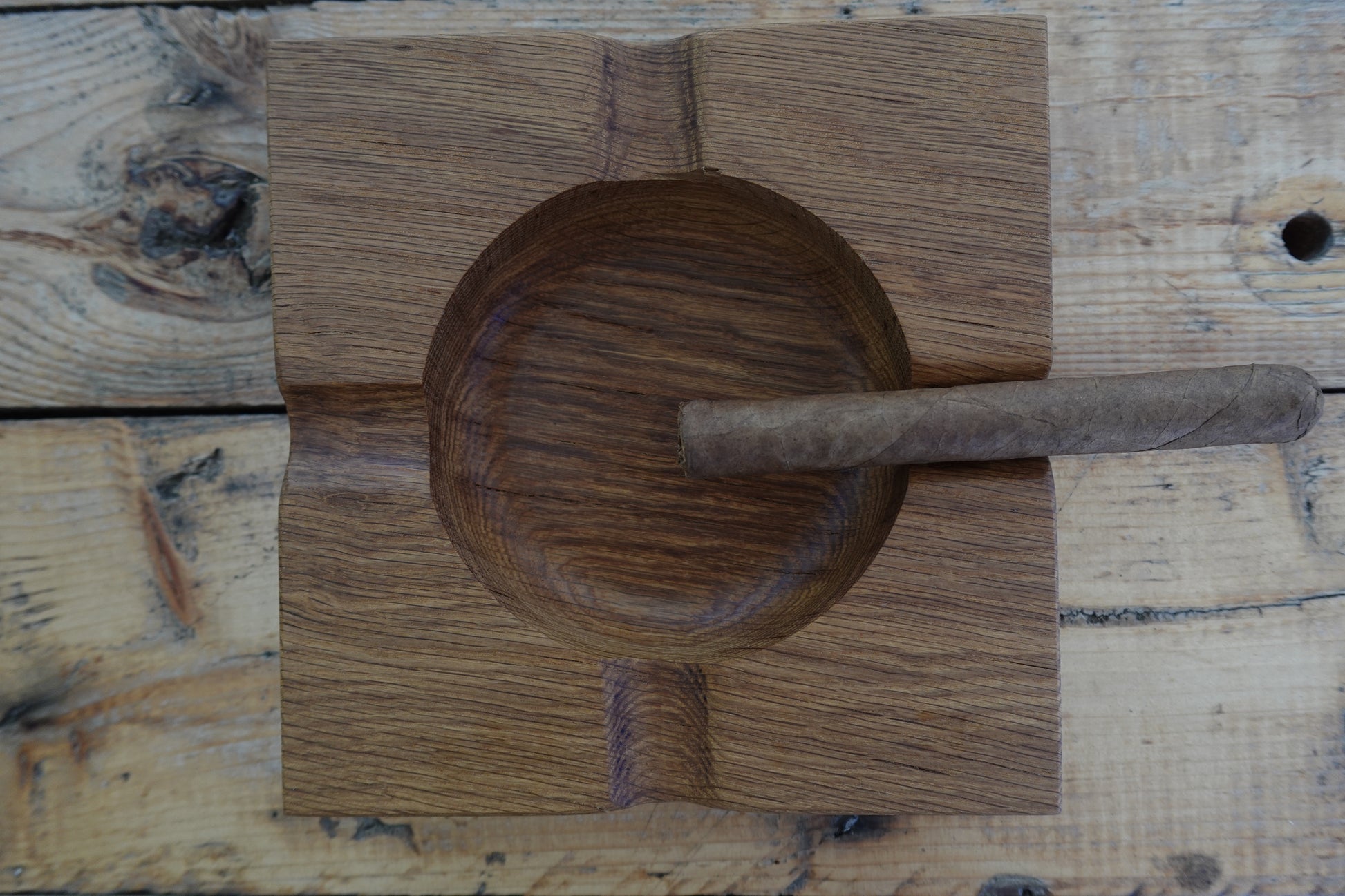 Crafted from Indiana White Oak and finished with food-safe oil, this 4 slot cigar ashtray not only boasts a beautiful design but also ensures practicality and safety. Perfect for any cigar enthusiast, it adds a touch of elegance to any smoking experience. Roughly 8" x 8" x 2"