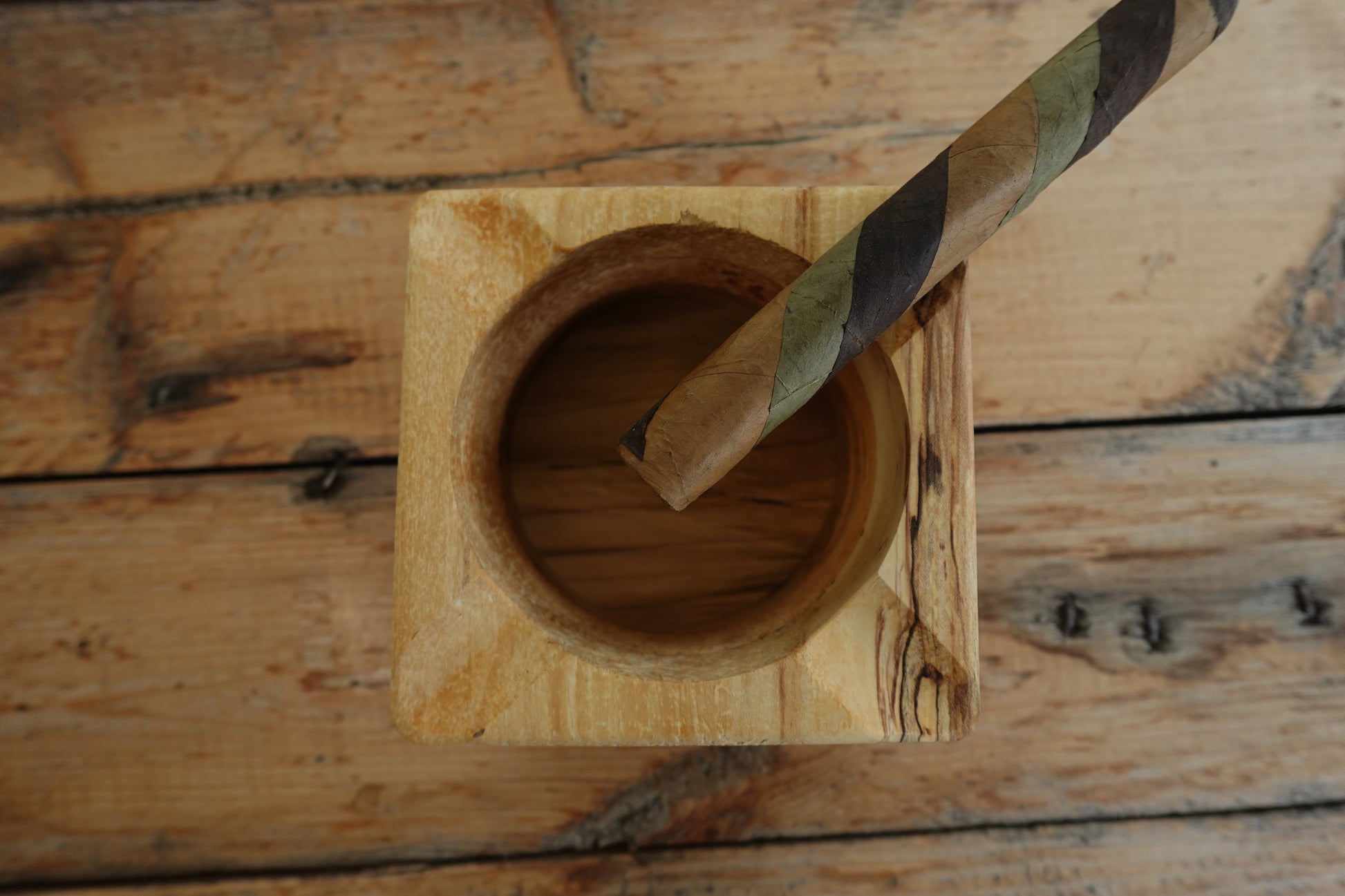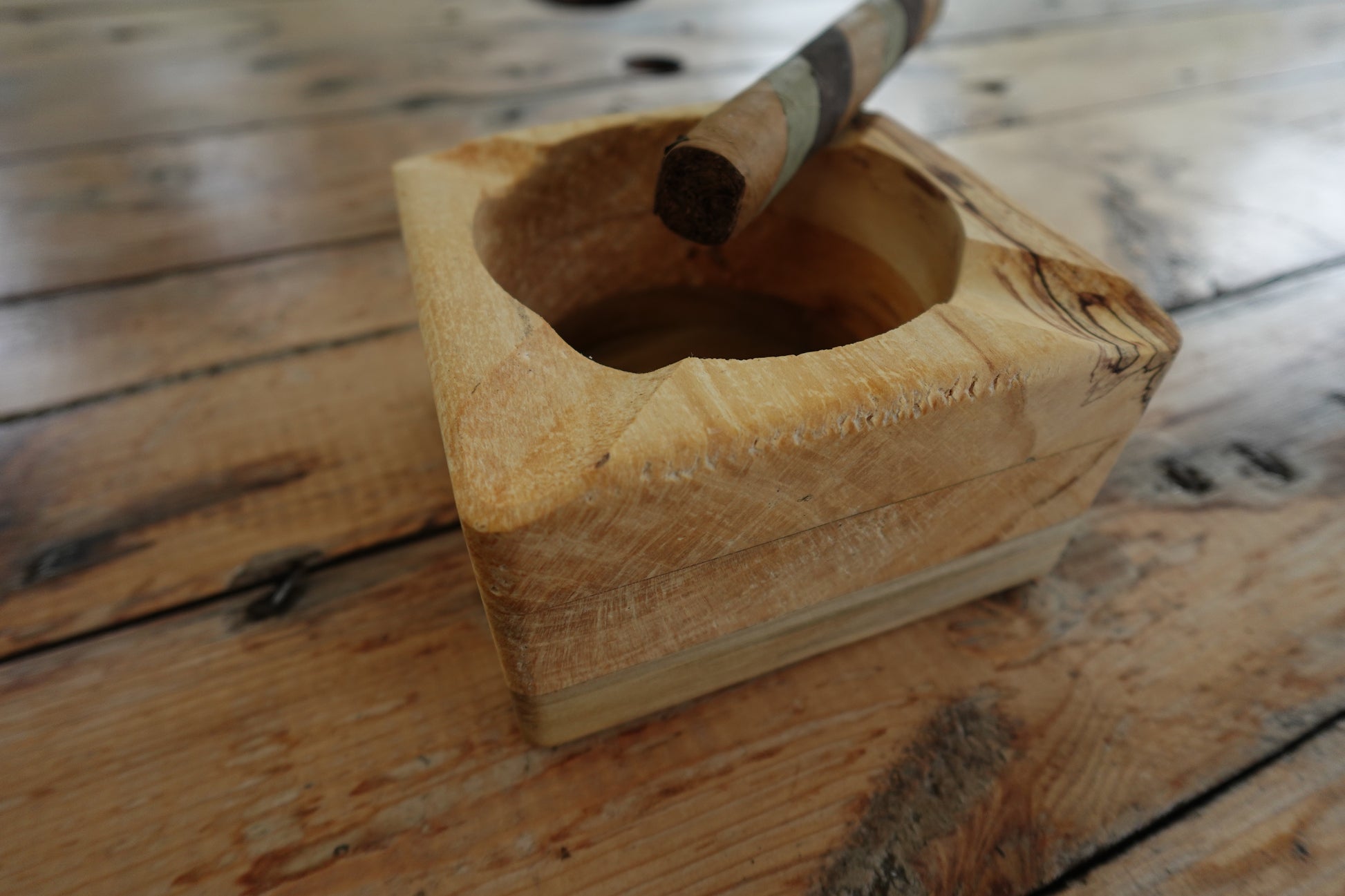 Handcrafted from a curated blend of Indiana hardwoods, this deep tray cigar ashtray showcases expert joinery with its distinctive four-finger design. The food-safe oil finish enhances the natural grain while providing durable protection, making it both a functional accessory and a refined display piece for any collection.
