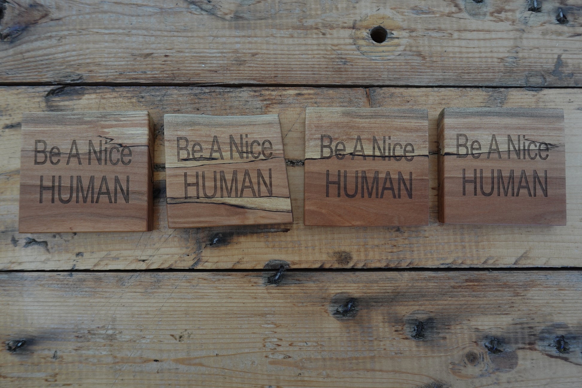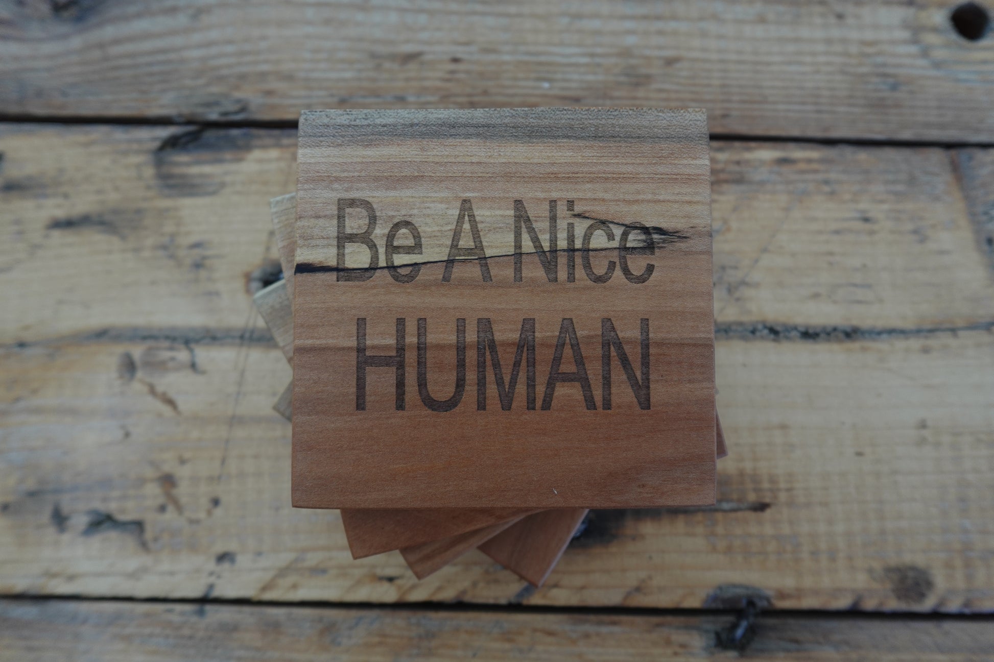 Elevate your home decor and spread positivity with Be A Nice Human Coasters. These coasters feature a great message that will remind you to be kind, and they also function as quality drink coasters. Perfect for any living space, these coasters are a subtle yet impactful addition to your daily routine.