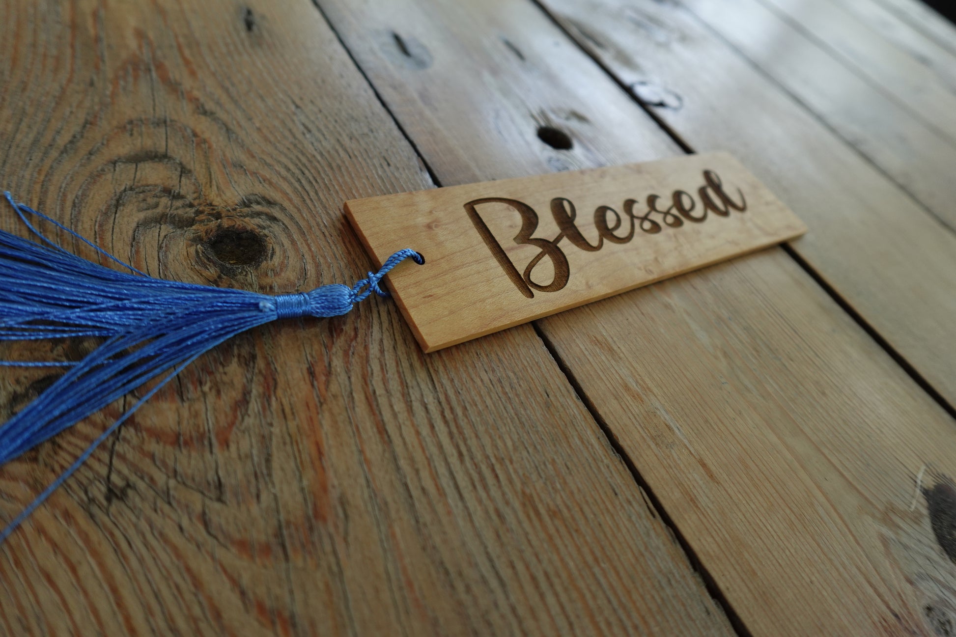 Crafted from Indiana wood, our "Blessed" Bookmark & Tassel adds a touch of elegance to your reading experience. Choose from Maple, Oak, Ash, Cherry, or Walnut for a personalized touch. Each bookmark is meticulously handcrafted for a unique and beautiful piece. Enhance your reading with our high-quality bookmark.
