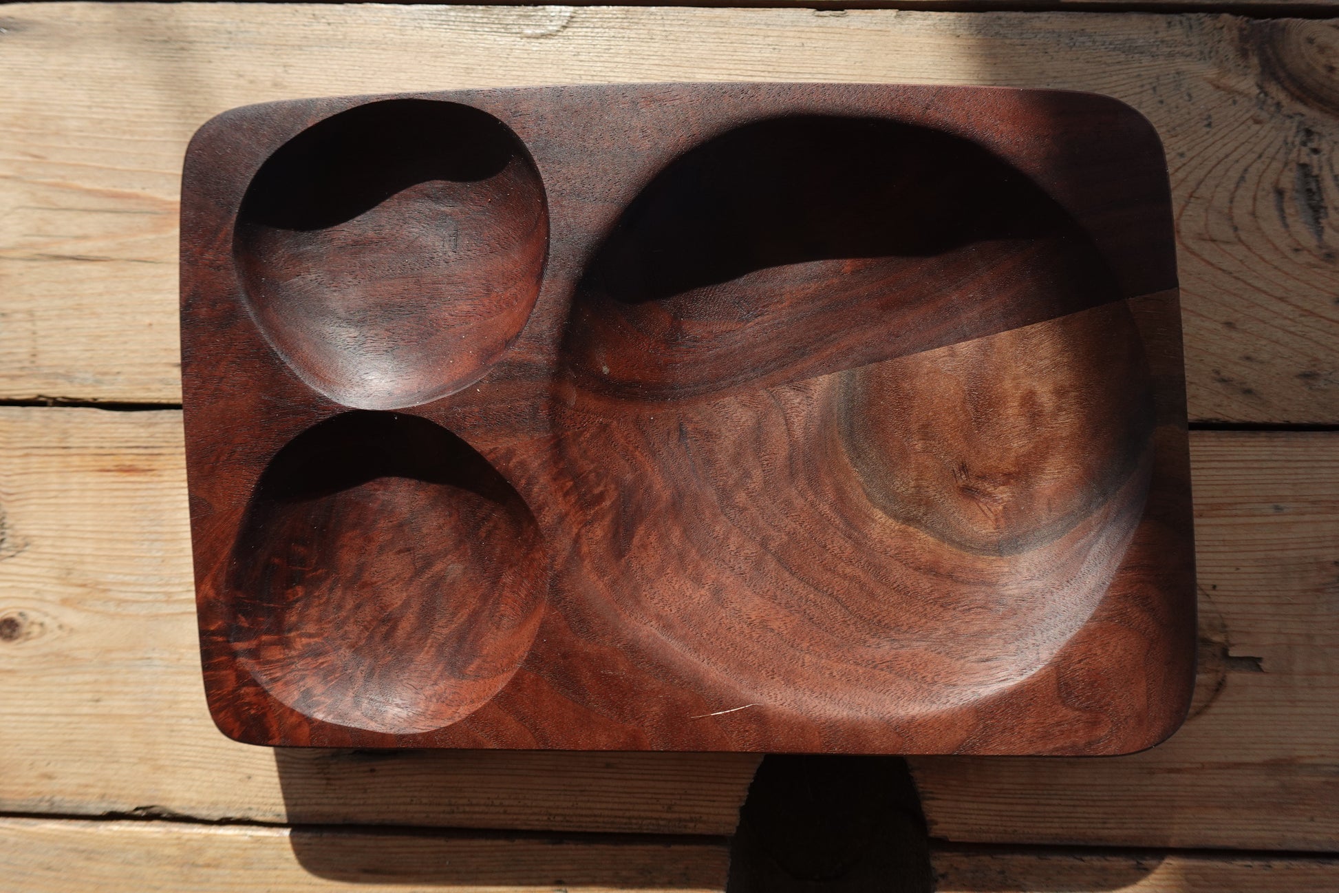 Elevate your serving game with our Gorgeous Indiana Walnut Serving Tray! Handcrafted by artisans, it features 3 distinct power-carved sections, designed with the ultimate serving spread in mind. Impress your guests and enhance the presentation of your dishes, snacks, and treats with this beautiful, functional, one-of-a-kind serving tray.