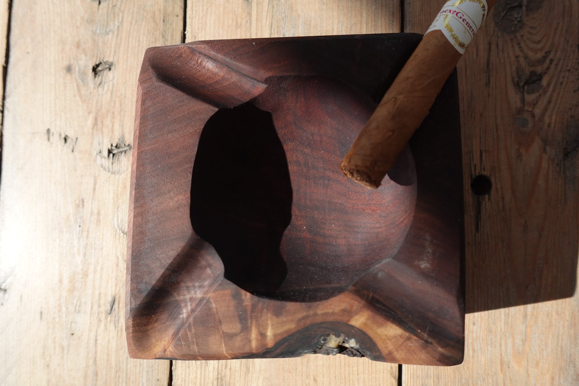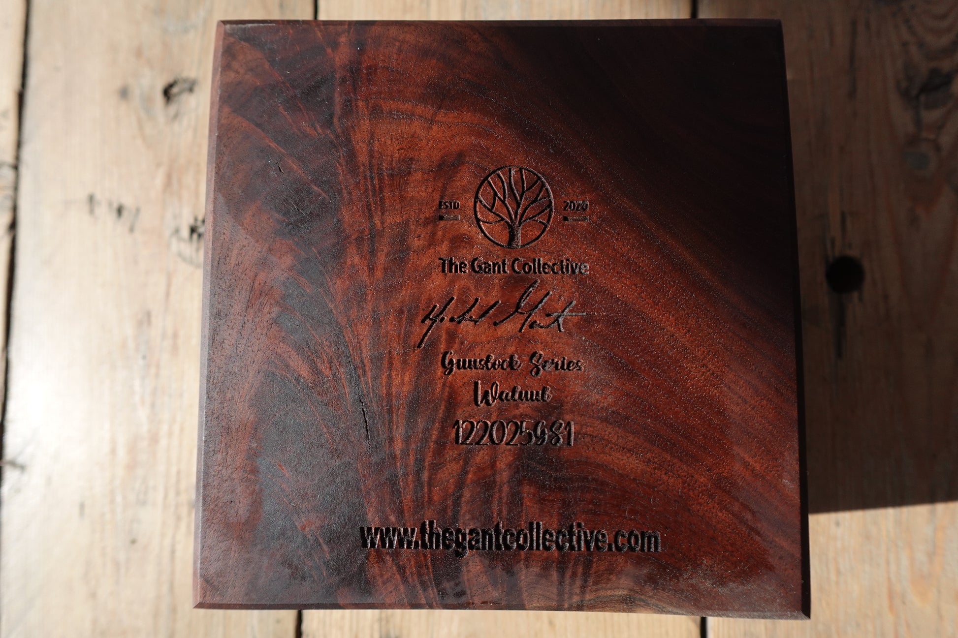 Introducing the Gunstock Series 122025GS1 - a beautiful cigar ashtray made from high-quality Walnut, sourced from the top gunstock manufacturer in the US. This limited edition piece, designed by a cigar smoker for cigar smokers, will become a cherished family keepsake. Its dimensions of 6" x 6" x 3" and food-safe oil finish make for easy maintenance and long-lasting beauty.