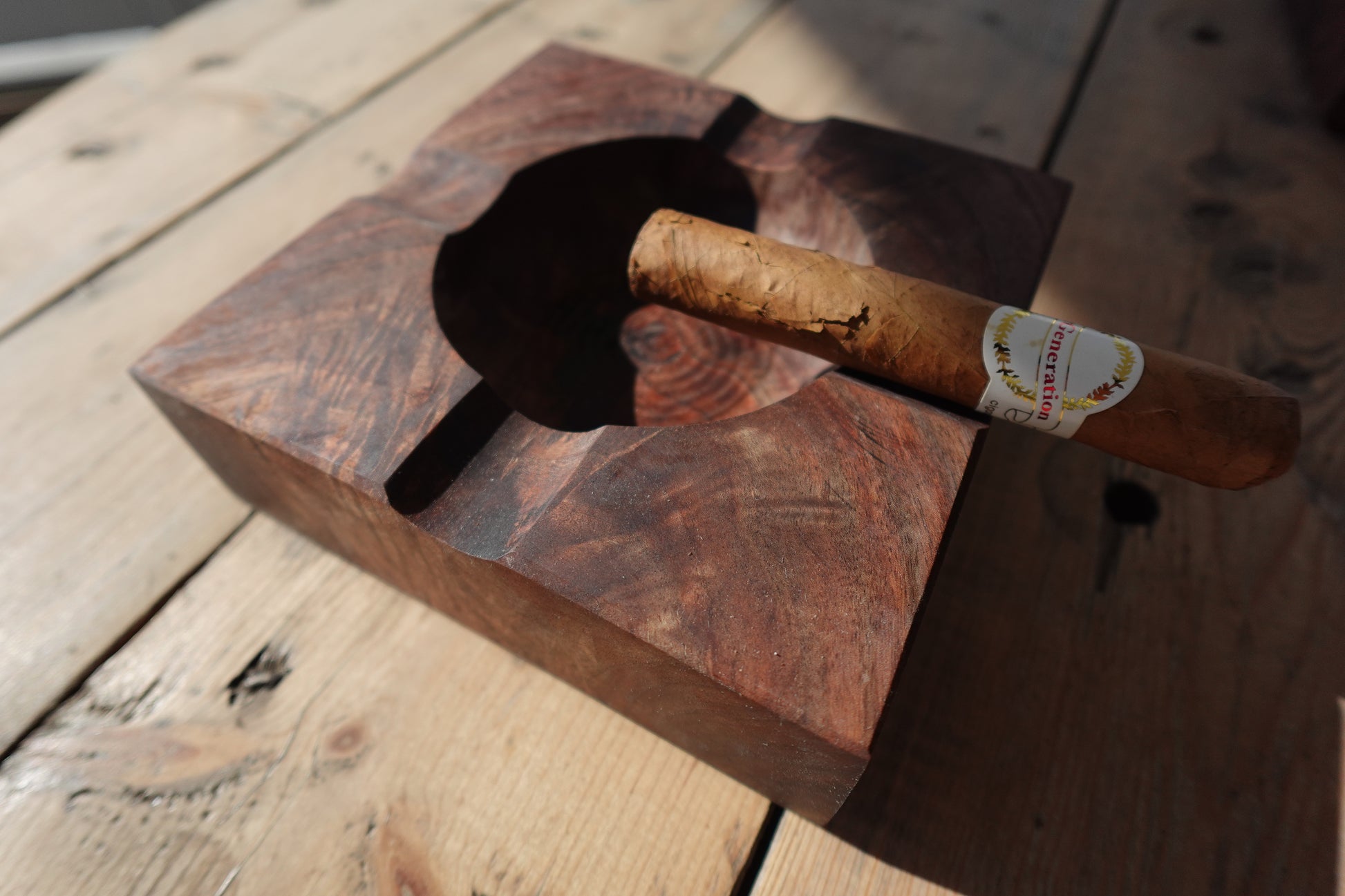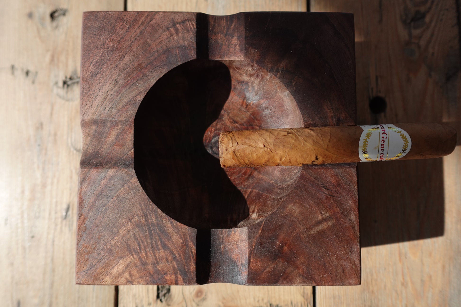 Introducing the Gunstock Series 2122025GS1 - a beautiful cigar ashtray made from high-quality Walnut, sourced from the top gunstock manufacturer in the US. This limited edition piece, designed by a cigar smoker for cigar smokers, will become a cherished family keepsake. Its dimensions of 6" x 6" x 3" and food-safe oil finish make for easy maintenance and long-lasting beauty.