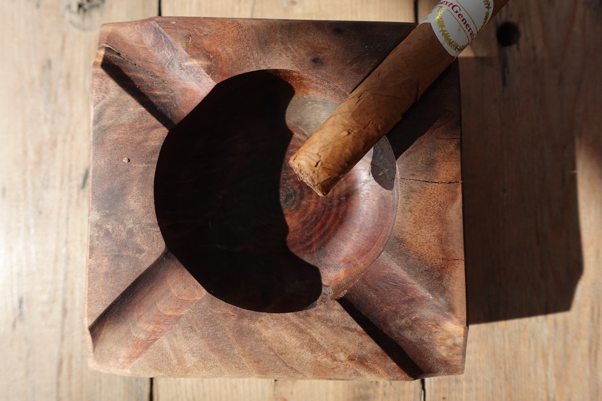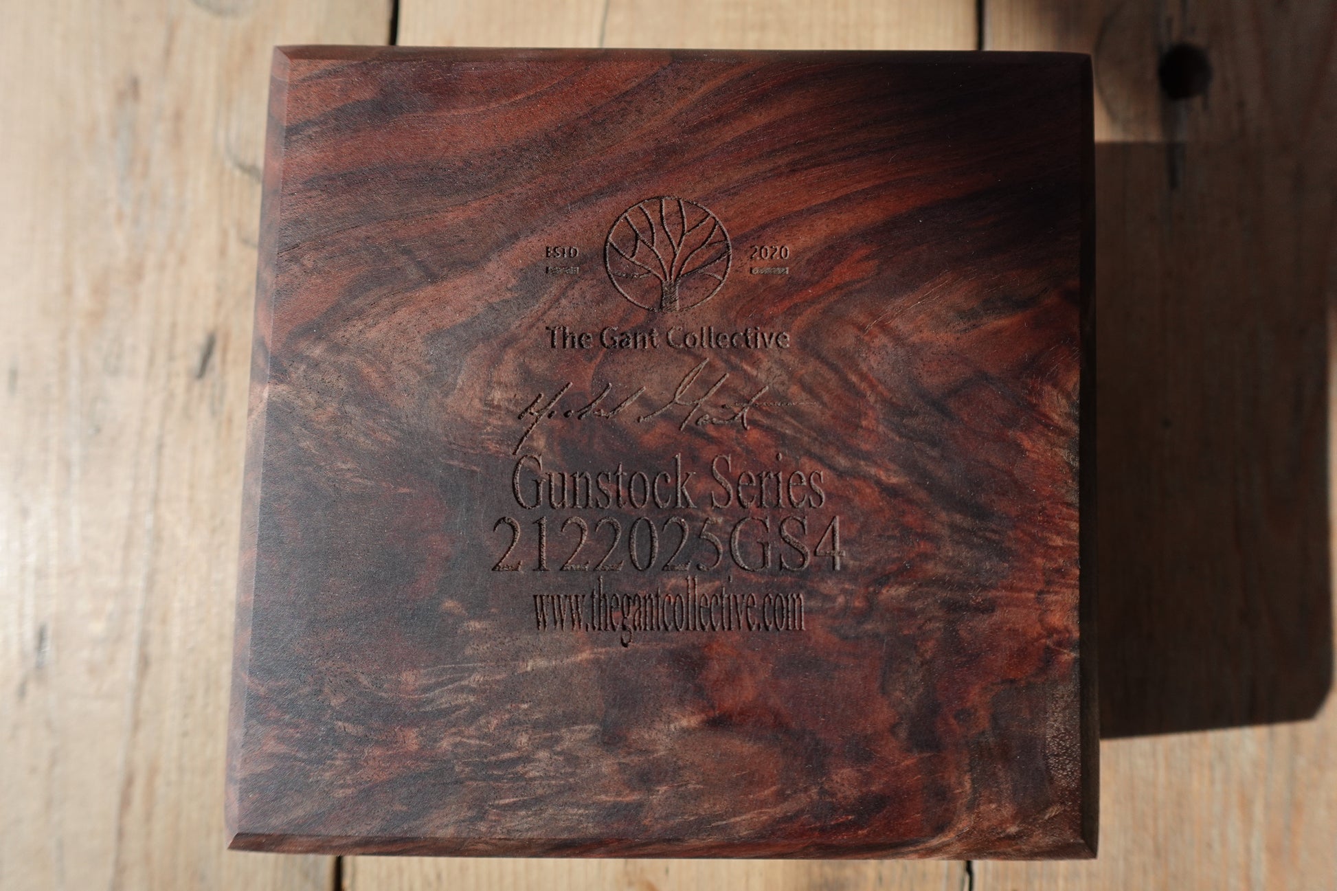 Introducing the Gunstock Series 2122025GS4 - a beautiful cigar ashtray made from high-quality Walnut, sourced from the top gunstock manufacturer in the US. This limited edition piece, designed by a cigar smoker for cigar smokers, will become a cherished family keepsake. Its dimensions of 6" x 6" x 3" and food-safe oil finish make for easy maintenance and long-lasting beauty.