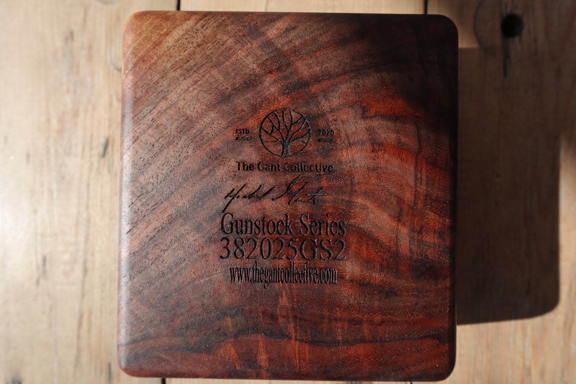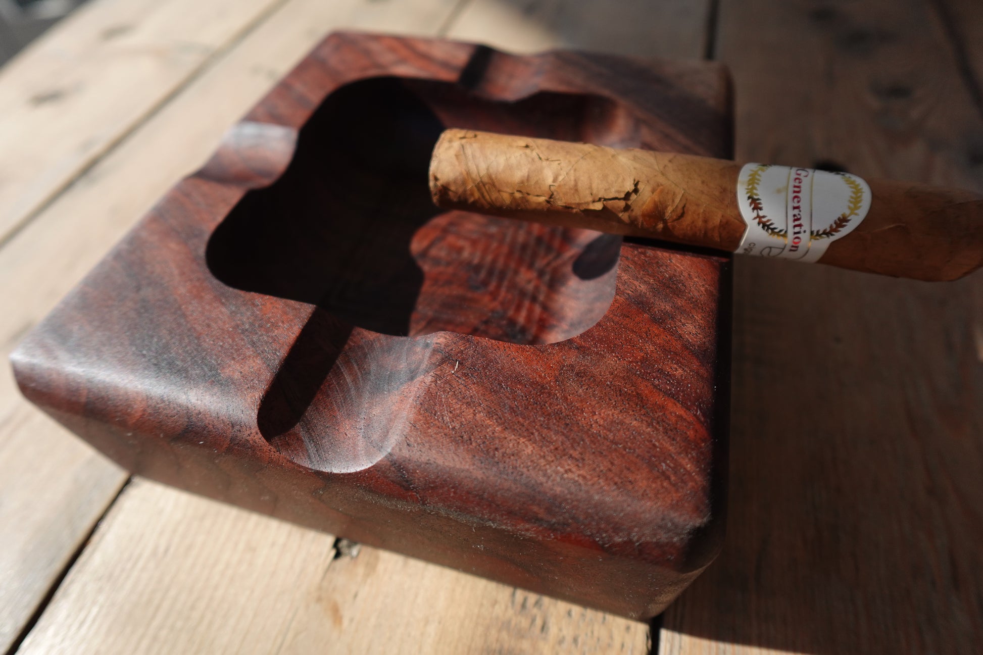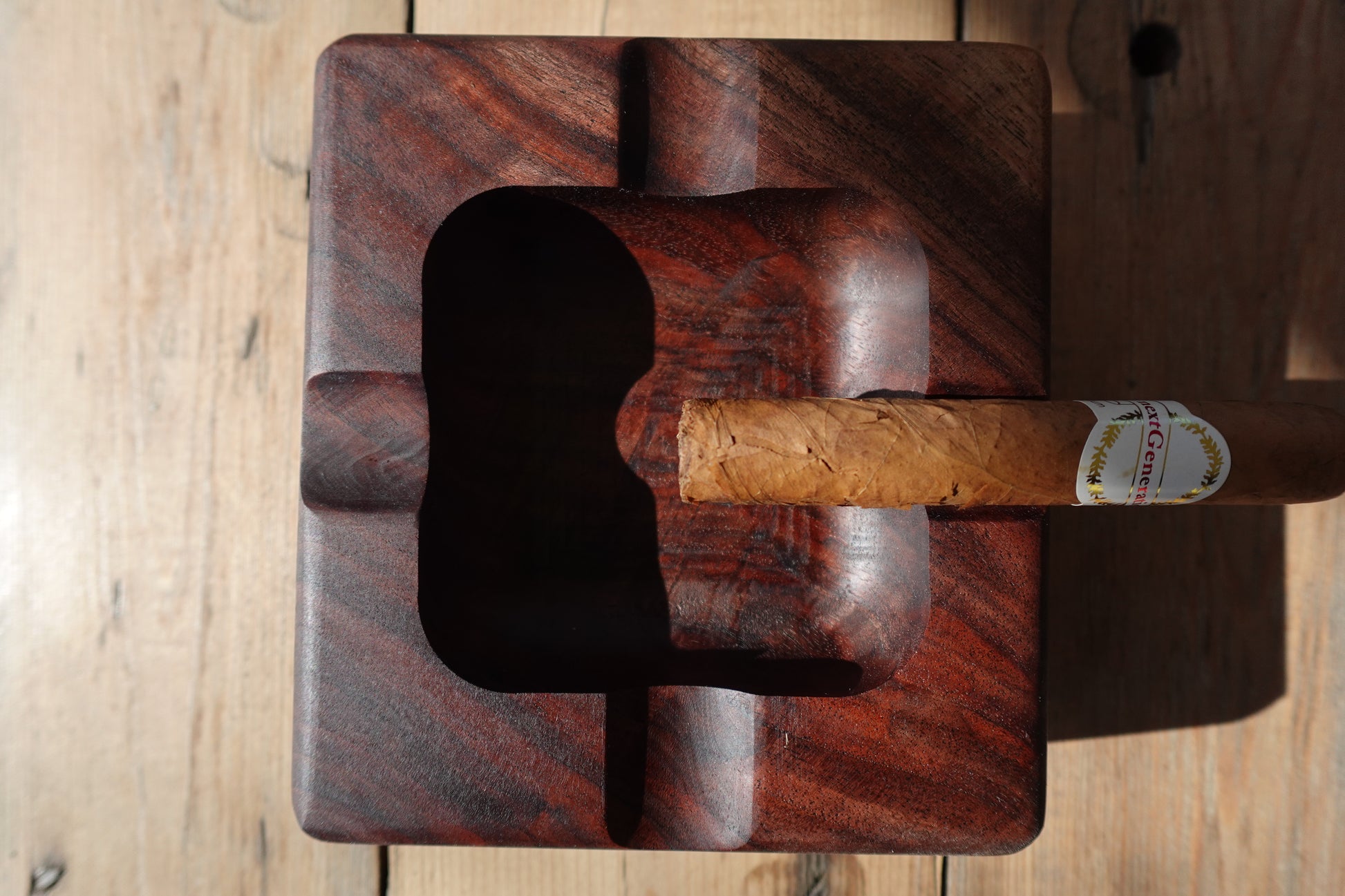 Introducing the Gunstock Series 3822025GS2 - a beautiful cigar ashtray made from high-quality Walnut, sourced from the top gunstock manufacturer in the US. This limited edition piece, designed by a cigar smoker for cigar smokers, will become a cherished family keepsake. Its dimensions of 6" x 6" x 3" and food-safe oil finish make for easy maintenance and long-lasting beauty.