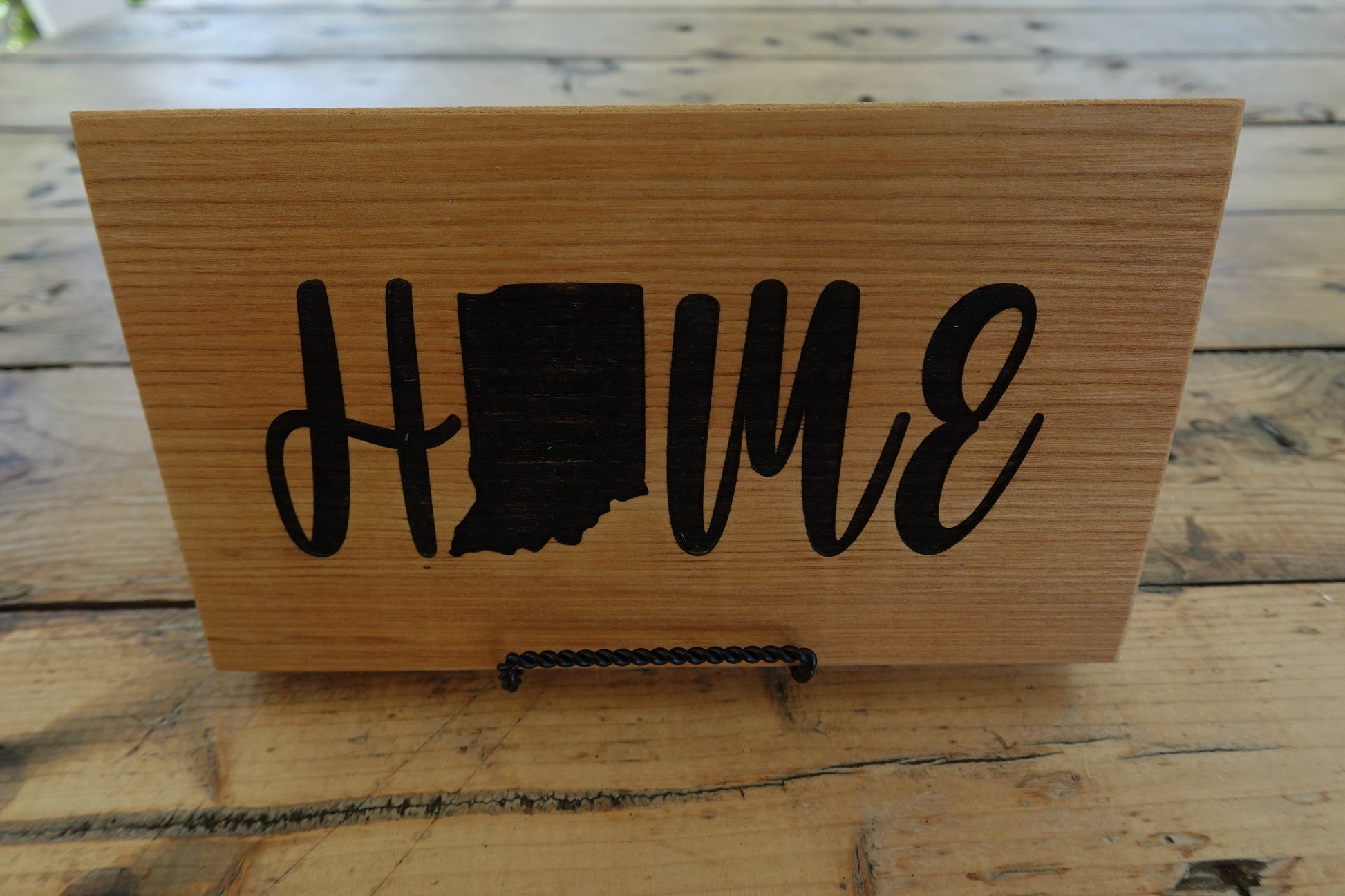 Display your Indiana pride with our Hardwood Indiana Home Signs! Laser engraved on various Indiana hardwoods, these signs are the perfect addition to any home or office. Show off your state pride and support local with our affordable options, complete with a stand. Choose your home state today!