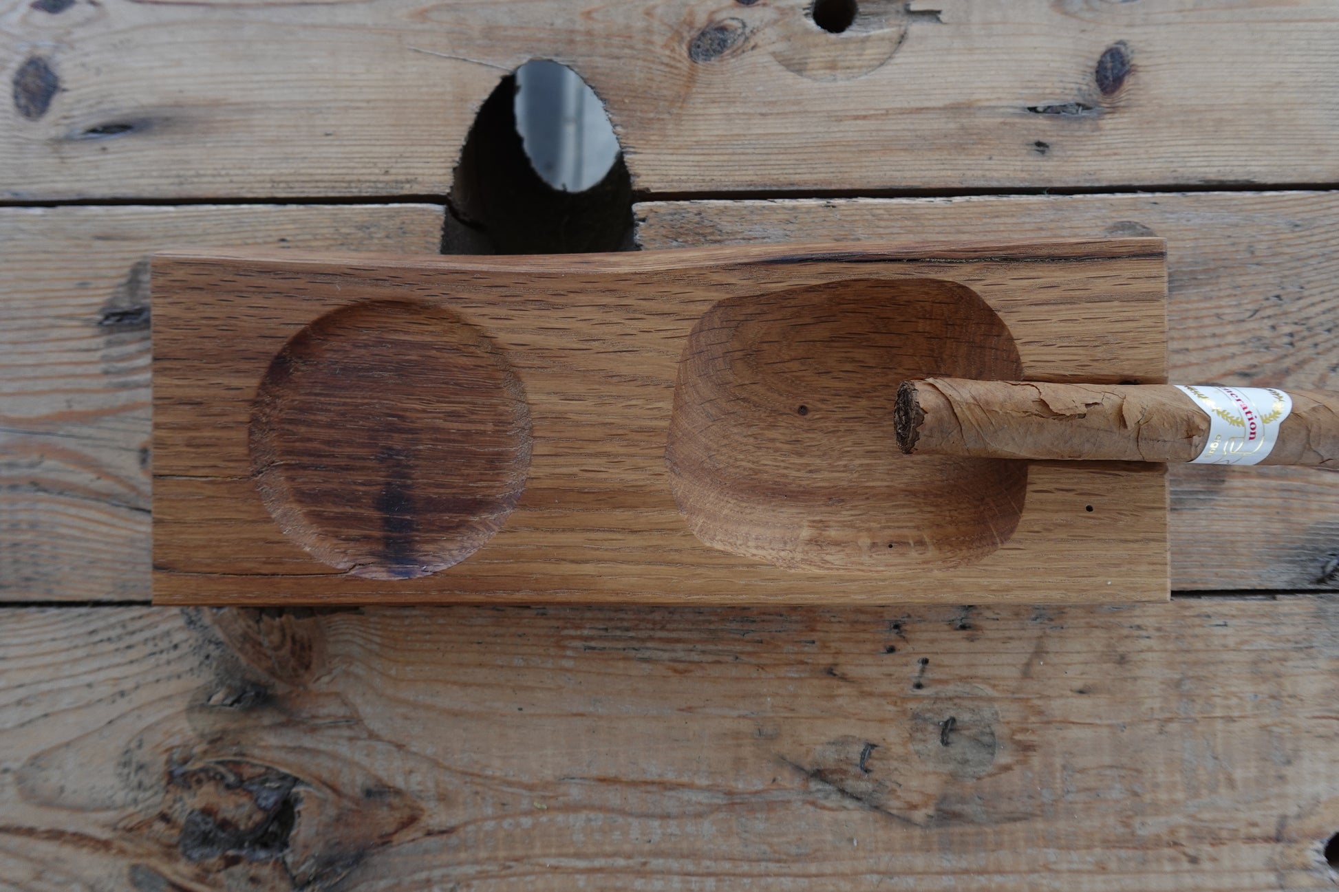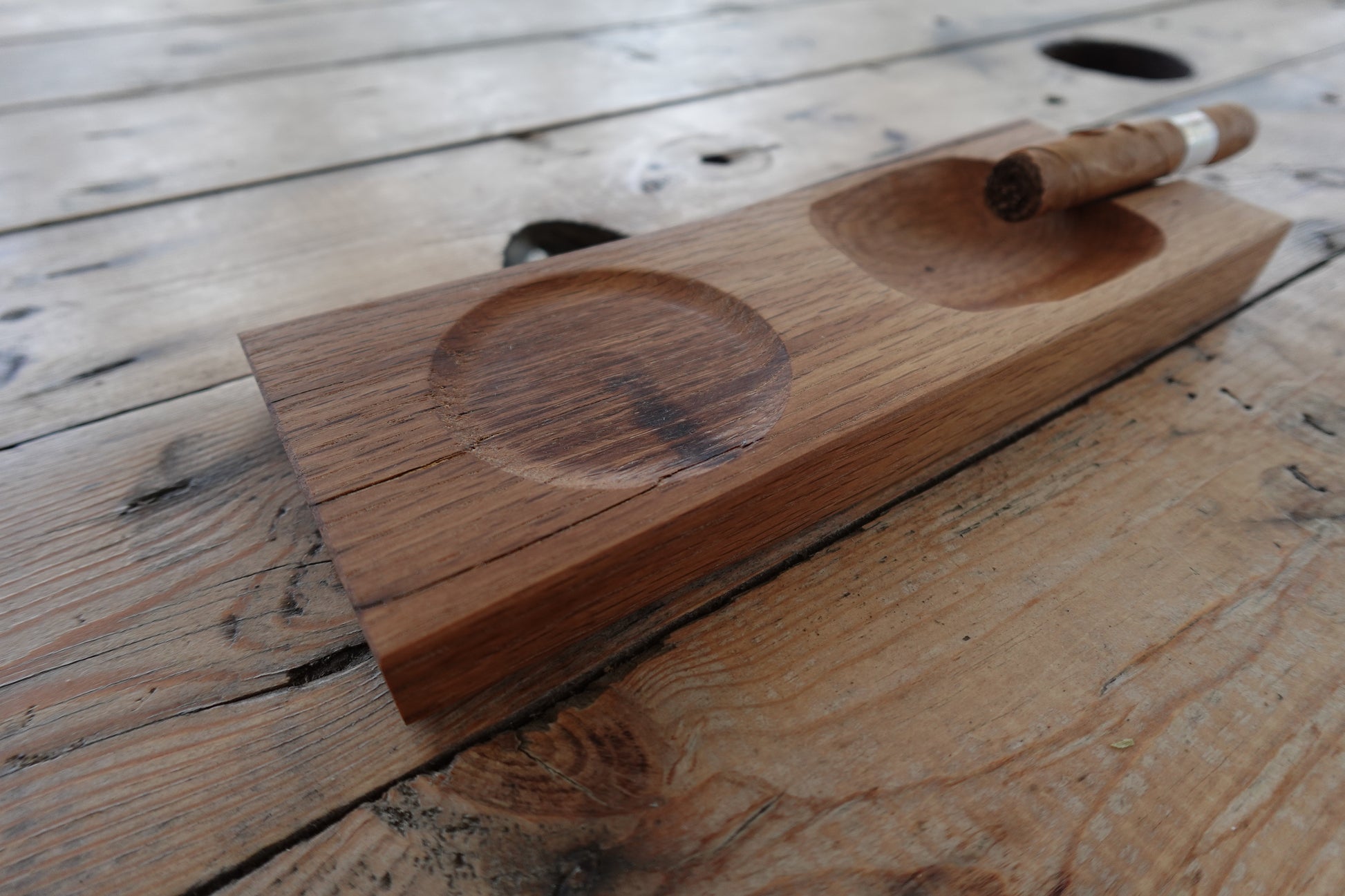 Crafted from Indiana White Oak, this single stick cigar ashtray is perfect for enjoying a relaxing smoke. The food safe oil finish enhances the beautiful grain features, while the coaster seat provides a convenient spot for your favorite beverage. Elevate your cigar experience with this high-quality ashtray.