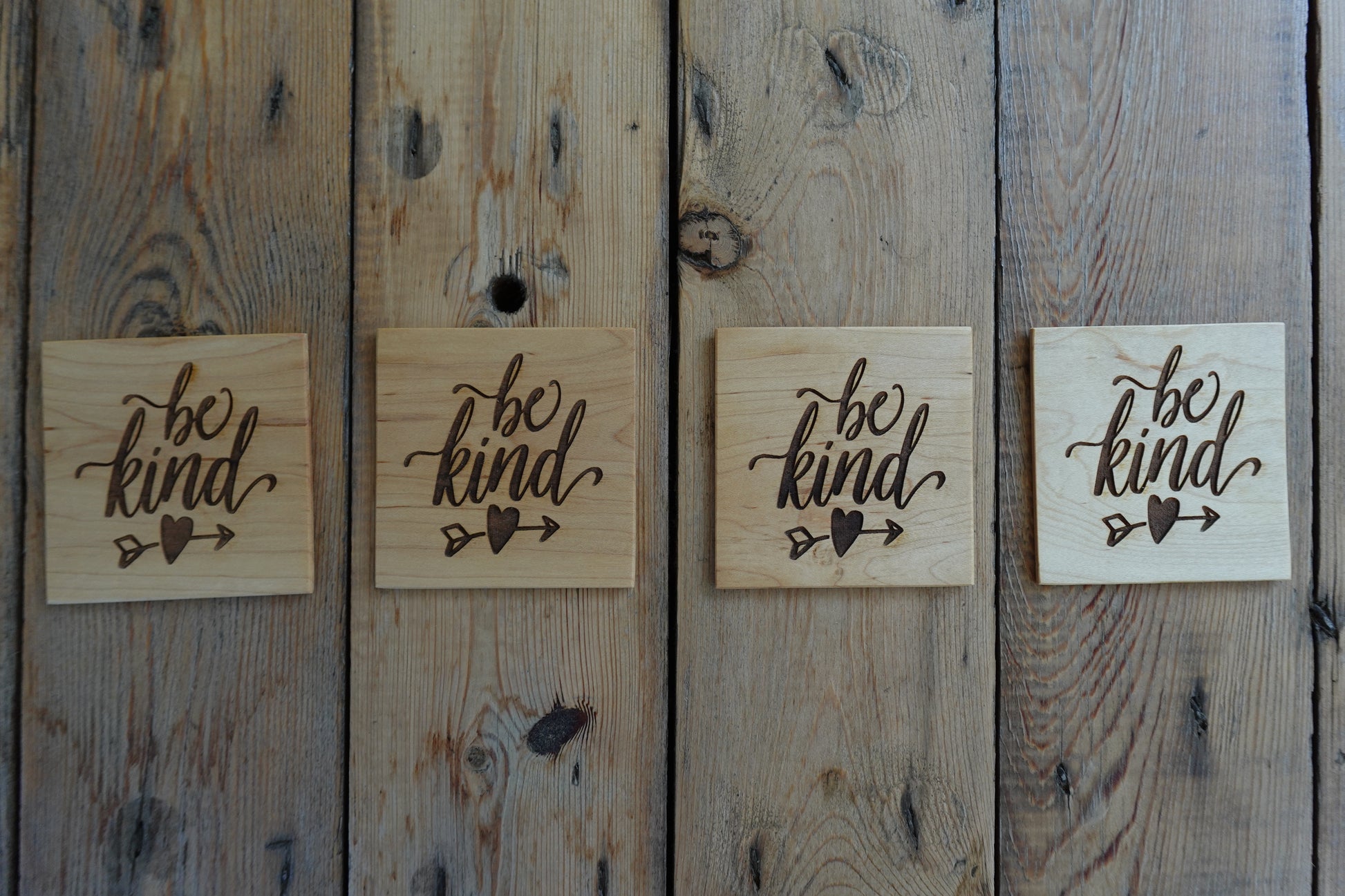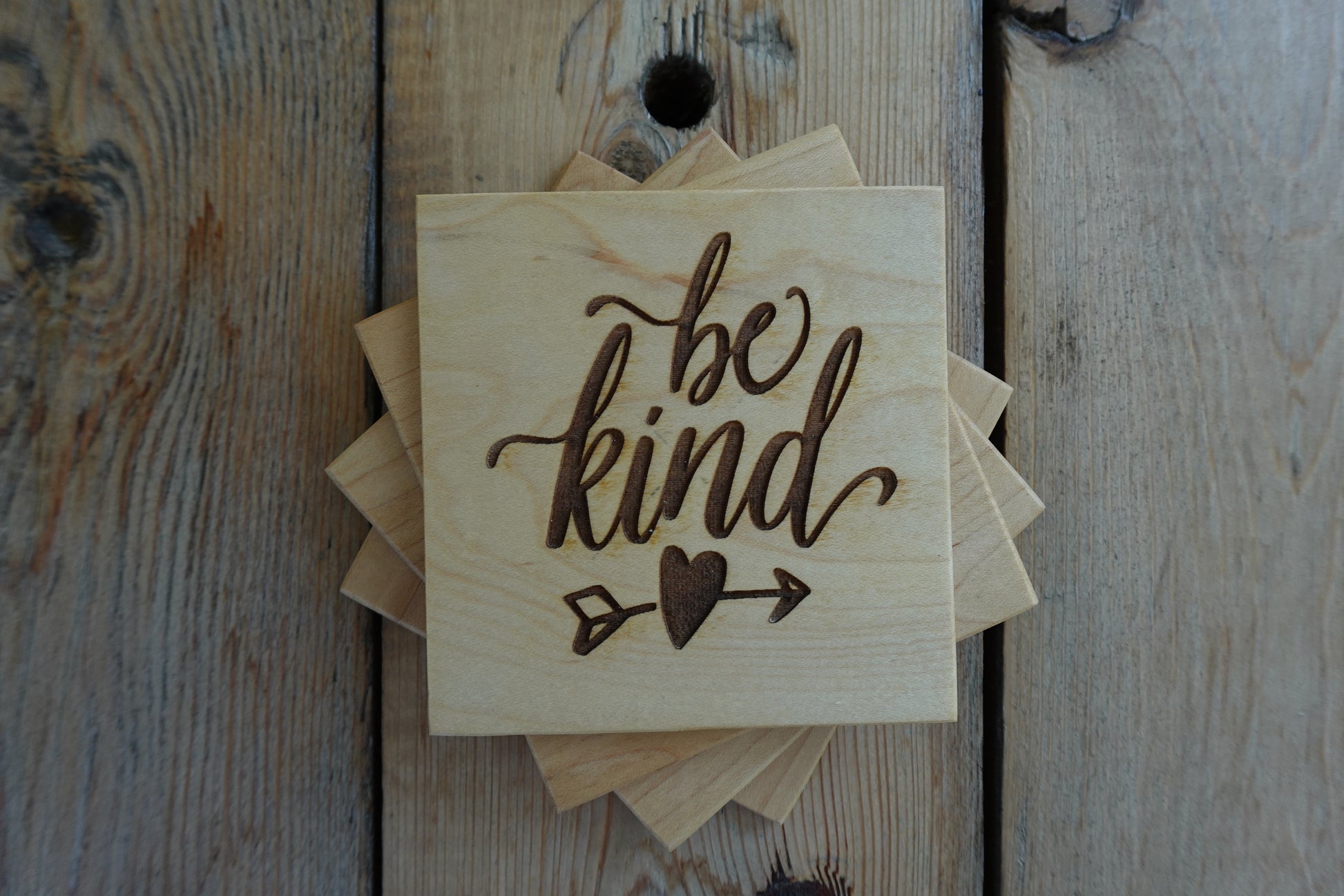 Expertly handcrafted using Indiana Ash, this "Be Kind" beverage holder features a food safe oil finish for a touch of elegance. Enjoy your drinks worry-free while spreading kindness with every sip.