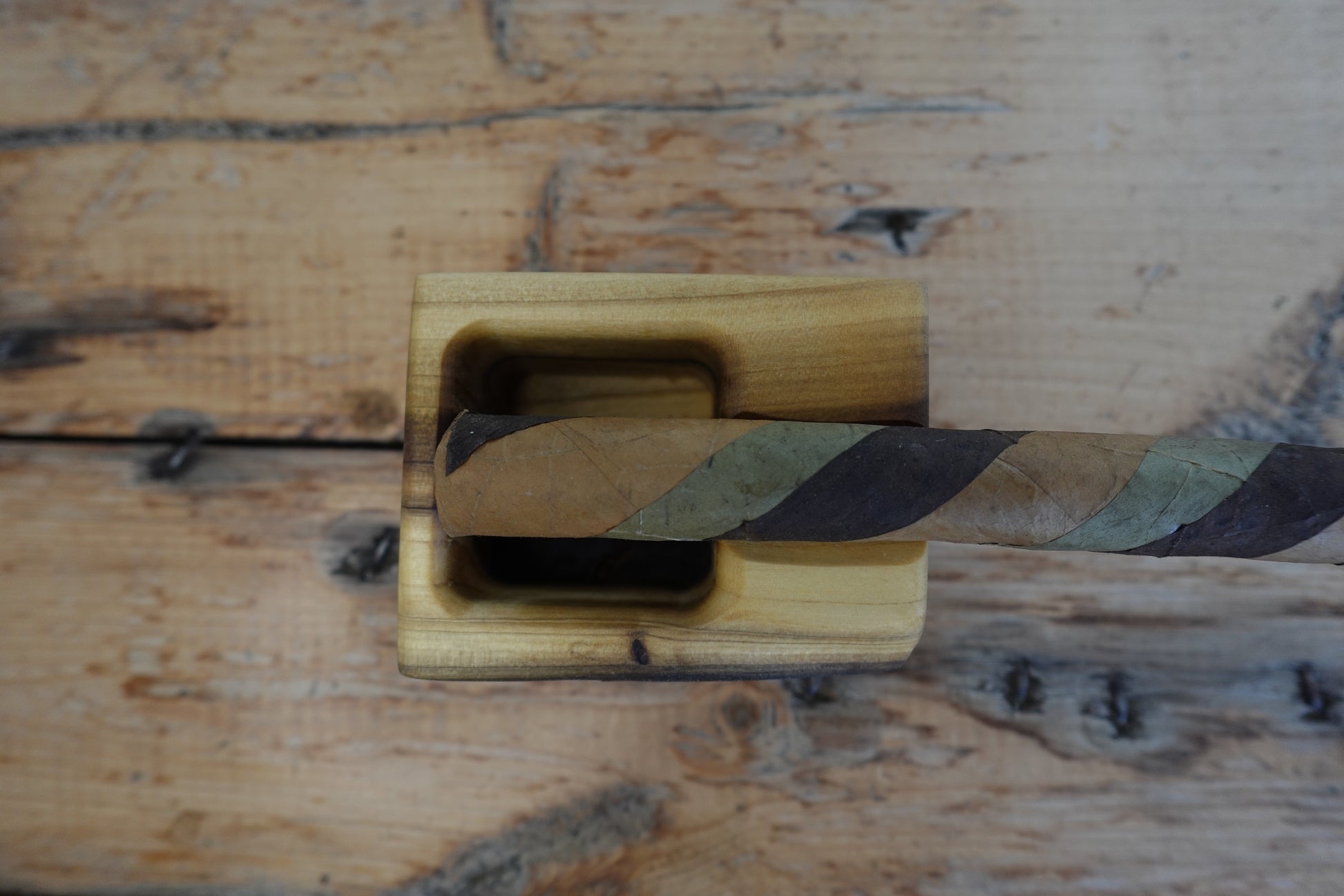 Handcrafted from Indiana Poplar, this single-finger cigar ashtray combines functional design with artisanal craftsmanship. The food-safe oil finish enhances the wood's natural grain while providing durable protection. Ideal for the solo smoker seeking a refined resting place for their cigar, this piece delivers both practicality and understated elegance to any smoking space.