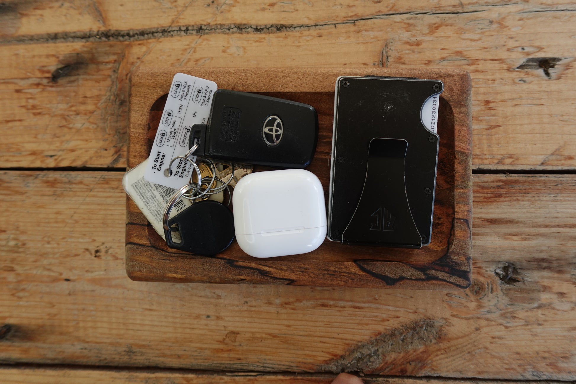 Handcrafted from premium Indiana-sourced spalted maple, this valet tray showcases the wood's distinctive dark grain patterns and natural character. Each piece is expertly finished to highlight the unique figuring inherent to spalted maple, creating a functional work of art. Perfect for organizing keys, coins, and personal items on a desk, dresser, or entryway table, this tray combines refined craftsmanship with practical elegance. The rich, sophisticated appearance elevates any space while its durable construction ensures lasting use.