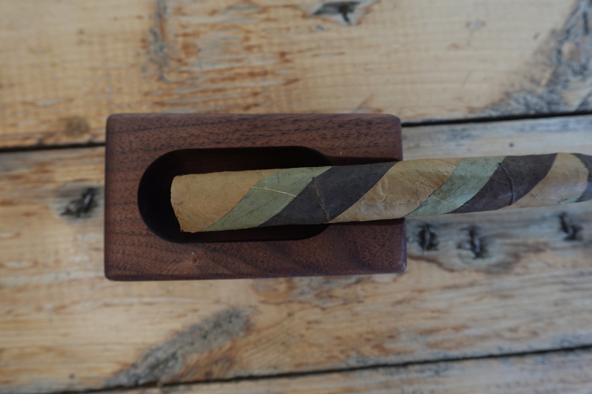 Handcrafted from premium Indiana walnut, this single-finger cigar ashtray combines functional design with timeless elegance. Finished with food-safe oil to enhance the wood's natural grain, it's built to withstand years of use while developing character. Designed by cigar enthusiasts who understand the ritual, this piece offers the perfect resting spot for your smoke. Its heirloom-quality construction ensures it becomes a cherished addition to your collection, passed down through generations.