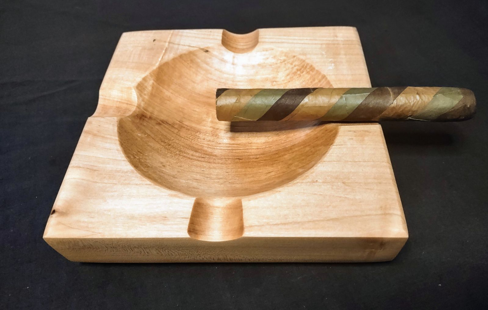 Expertly crafted from premium quality maple wood, this cigar ashtray features a unique concave tray design that prevents ashes from scattering. The perfect addition to any cigar lover's collection, it provides a sophisticated and practical way to enjoy a cigar without the mess. Upgrade your smoking experience with this elegant maple ashtray.