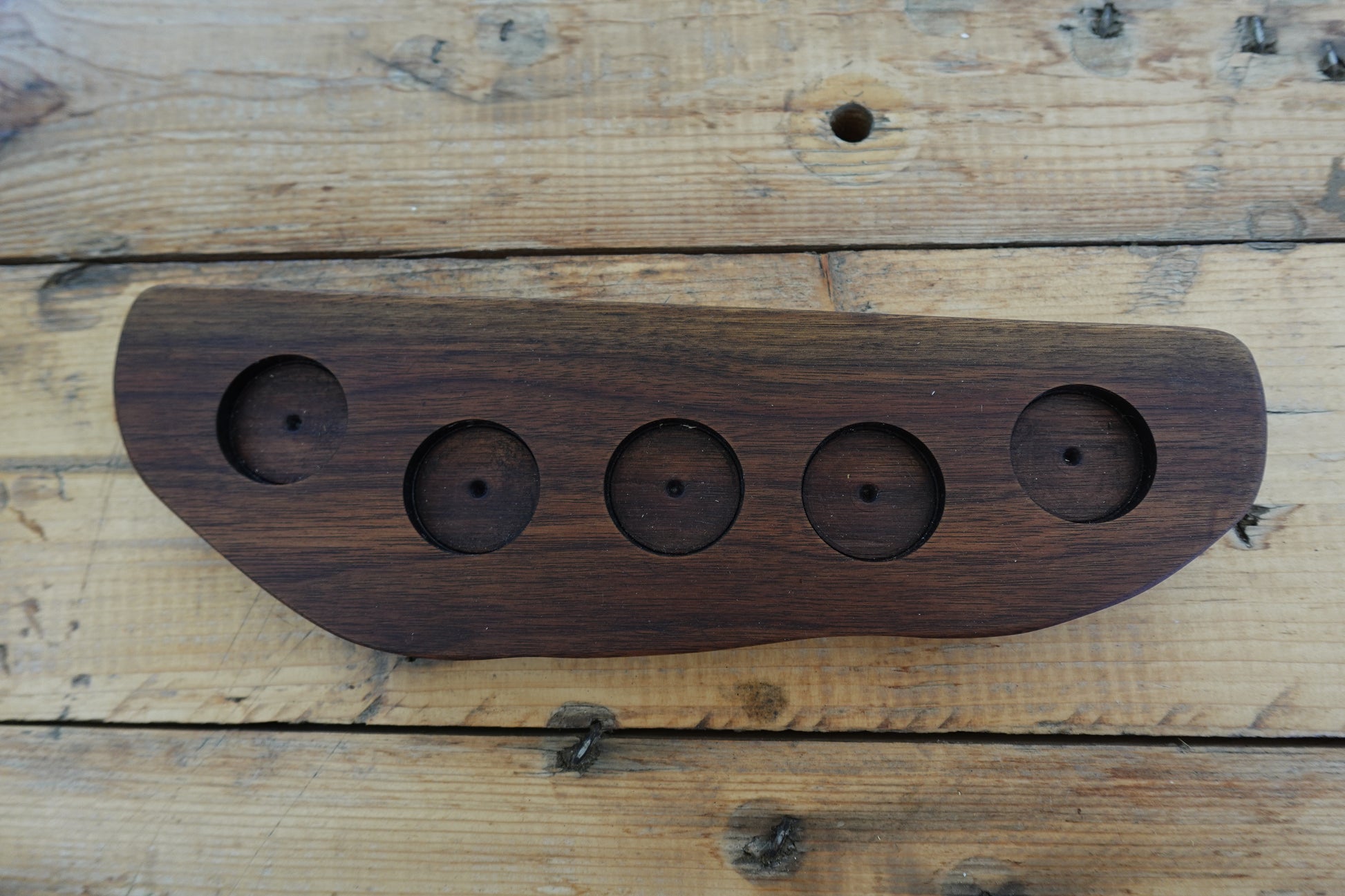 Experience the warmth and beauty of Indiana Walnut with our handcrafted Natural Edge Votive Candle Holder. Featuring a polished oil finish and a unique natural edge design, this 5 candle holder adds a touch of elegance to any room. Perfect for creating a cozy atmosphere and highlighting the natural beauty of walnut wood.