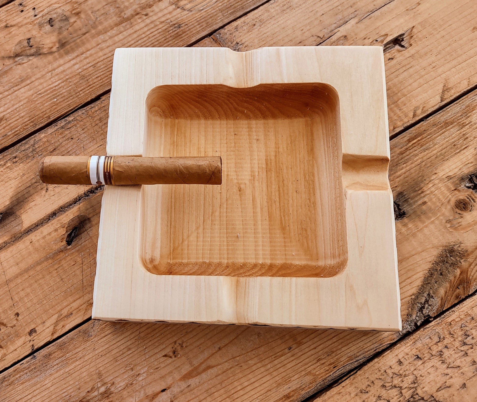 Crafted from durable Indiana Pine, the 392024P1 ashtray offers 4 slots and is food safe oil finished for added longevity and functionality. Elevate your cigar-smoking experience with this sleek and practical addition to your home.