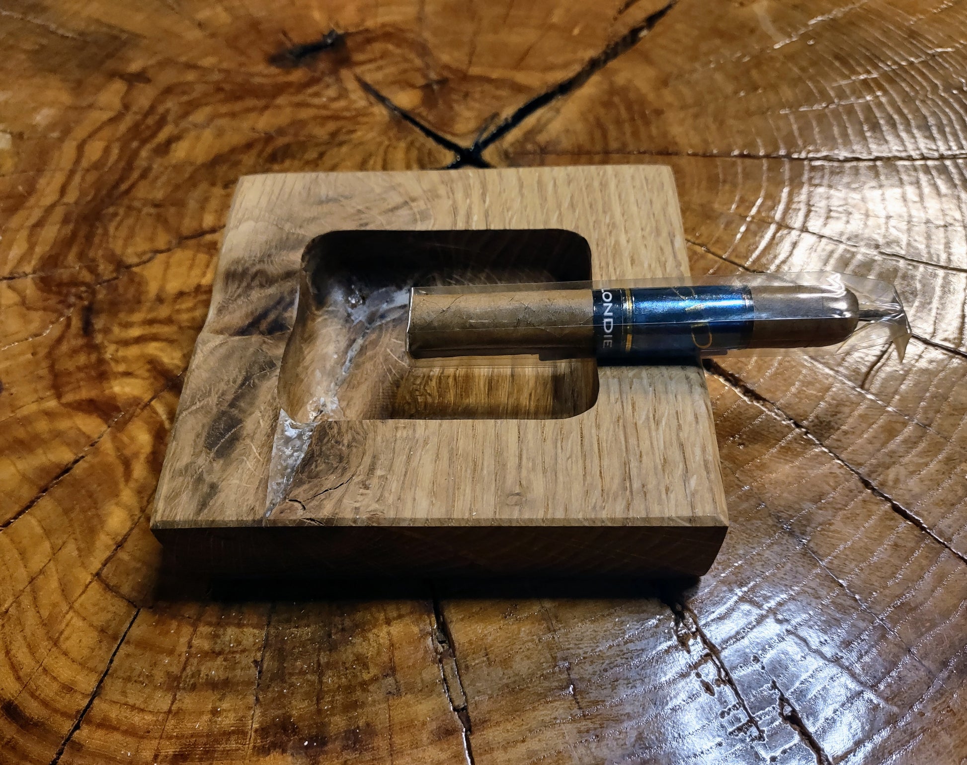 Expertly crafted for quick smokes and left-handers alike, the RO6 Small Red Oak Cigar Ashtray is the perfect addition to any smoking space. Its food safe oil finish ensures durability while the 2 slot design allows for easy use by the owner and fellow smoker. Built to last, it measures 4.75 x 4 3/8x 1 inches.