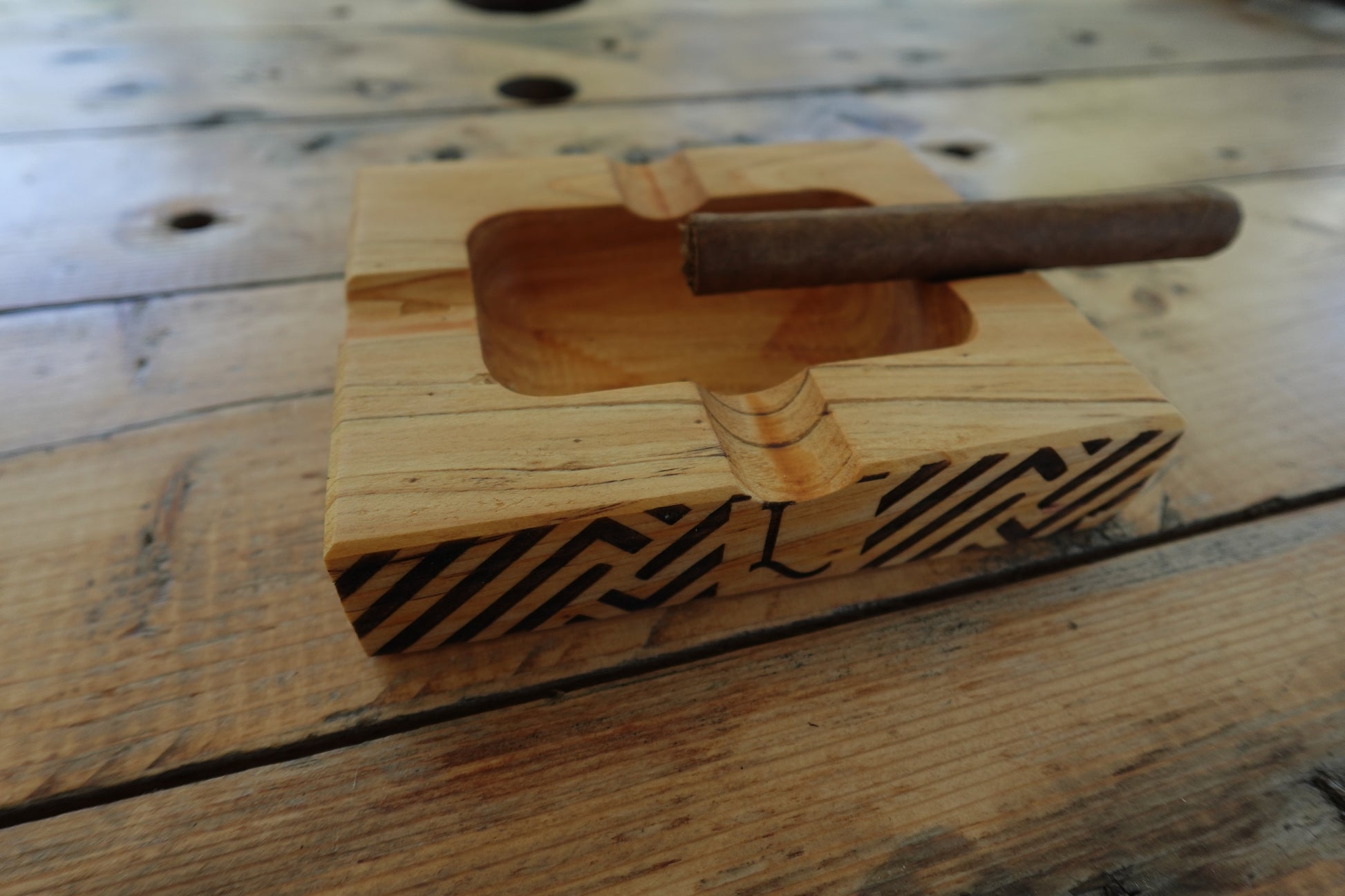 Expertly handcrafted from lightweight Indiana White Cedar, this 4 slot cigar ashtray is a must-have for any cigar enthusiast. The food safe oil finish ensures durability and the Luciano Cigars logo and geometric engraving add a touch of sophistication. Perfect for enjoying your favorite cigars in style and for the Luciano Cigars fan!