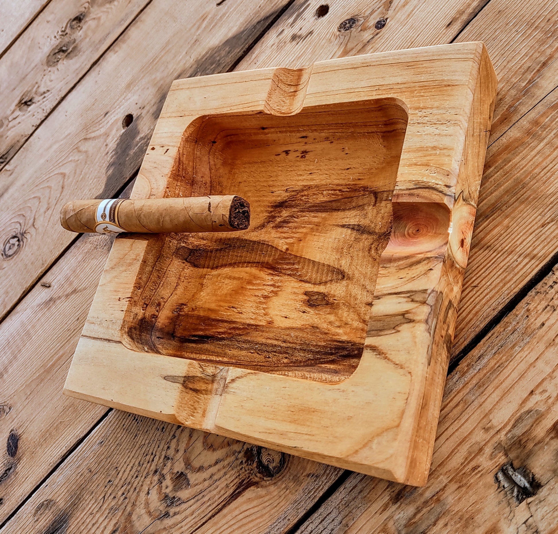 Introducing this White Cedar Beauty! This lightweight and food-safe cigar ashtray is made of premium White Cedar, measuring roughly 8' x 8" x 2". Its 4 slots make it perfect for sharing with friends, while the food safe oil finish adds a touch of elegance. A must-have for any cigar aficionado.