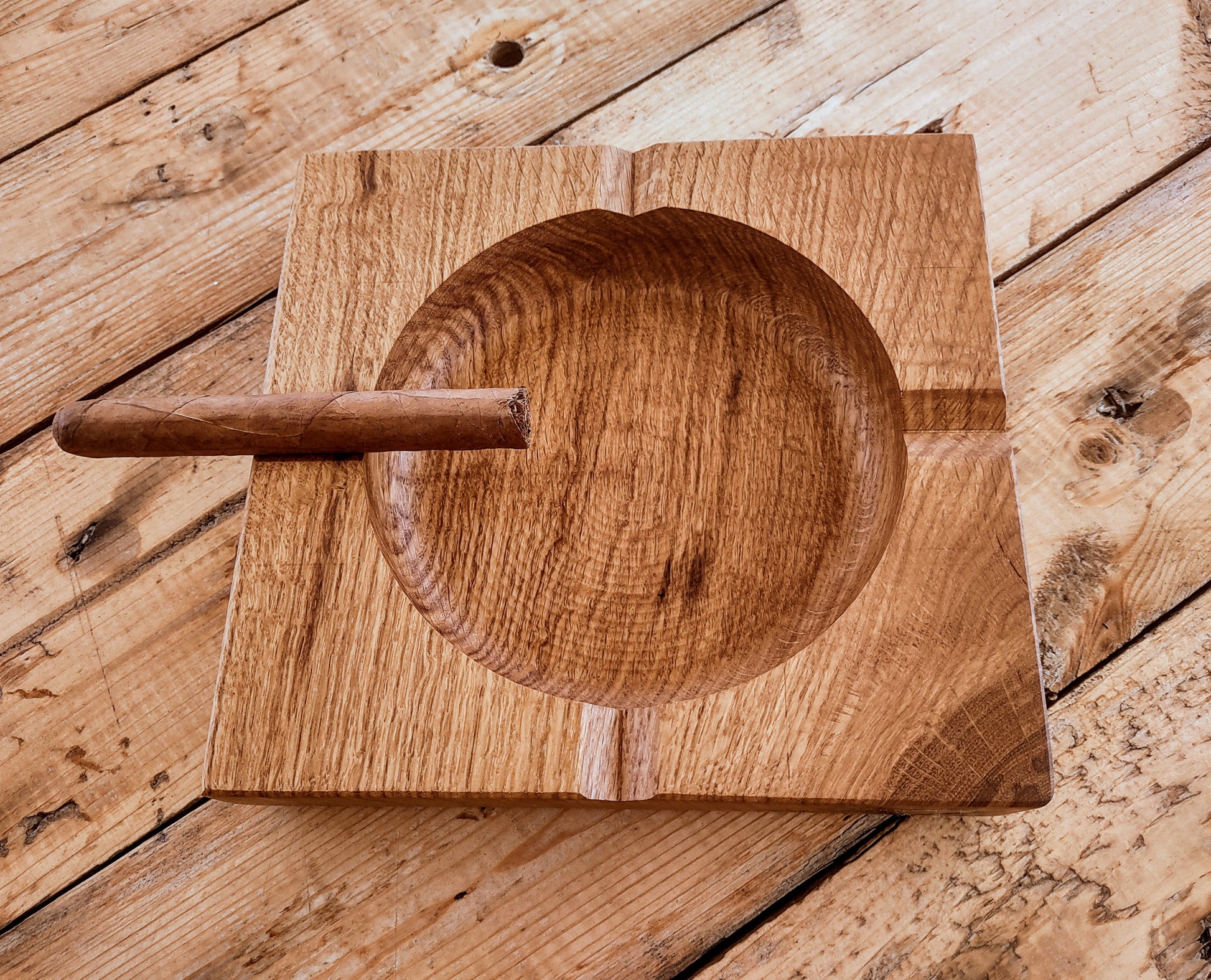 Crafted from White Oak and finished with food safe oils, this four slot cigar ashtray offers water repellent properties and ease of repair and refresh. A must-have for cigar enthusiasts looking for both quality and practicality.