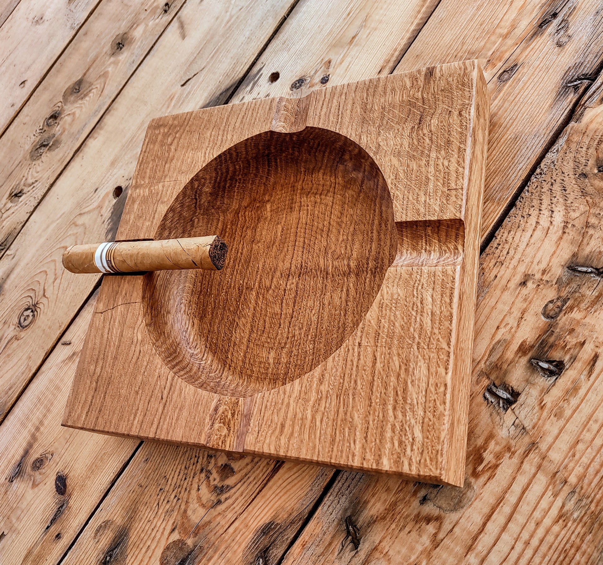 Experience the ultimate in cigar ashtrays with our deep dish Beauty! Crafted from White Oak, food-safe finished, with a smooth touch, this 8" x 8" x 2" ashtray offers four slots for your smoking pleasure. Elevate your cigar experience with the best in beauty and functionality.