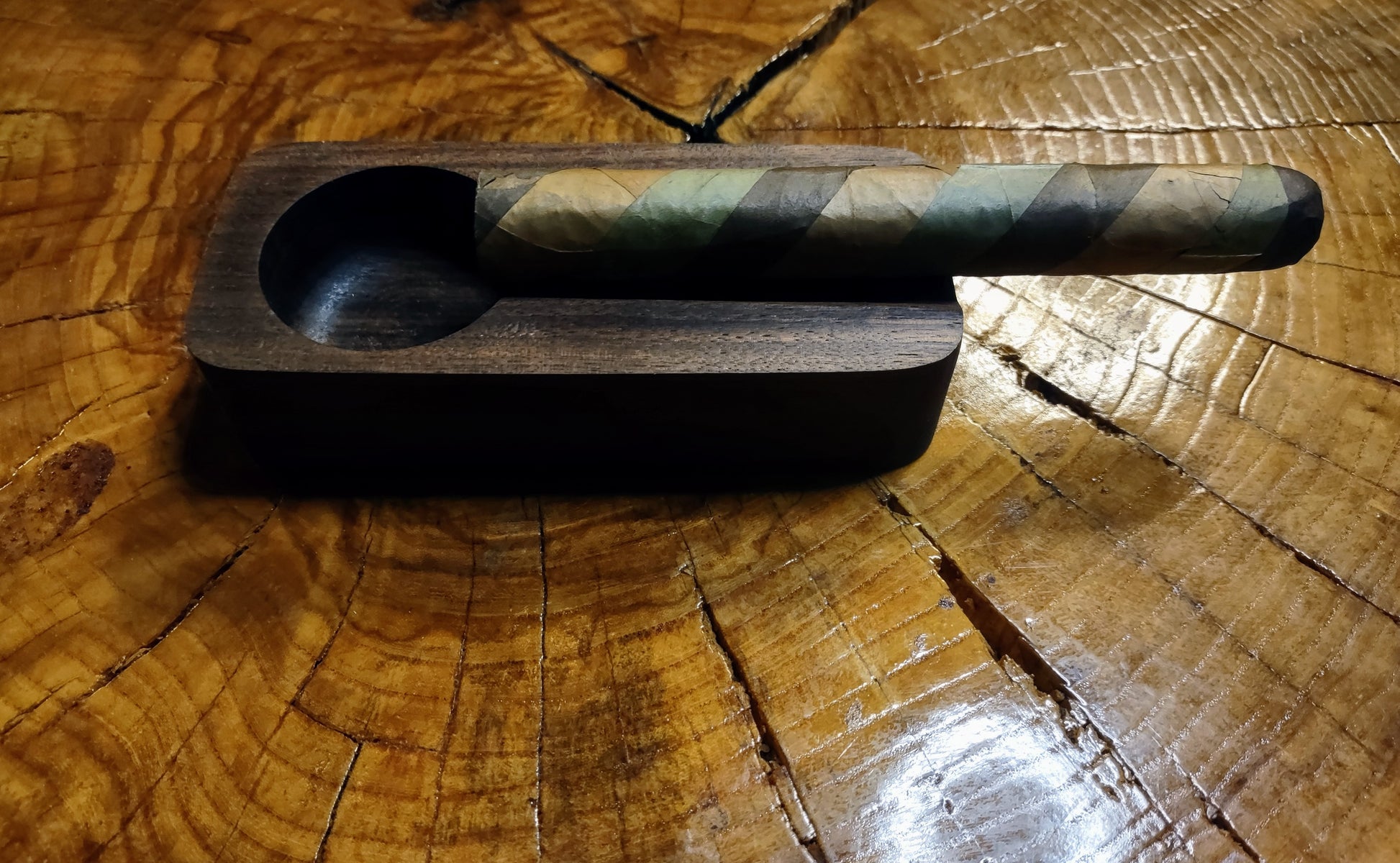 "The WS1 is a stunning addition to any home, boasting a small size and gorgeous chocolate hue. Made from walnut, this exquisite ashtray adds a touch of elegance to any space. Enjoy its rich color and sturdy construction, perfect for indulging in your favorite cigars or left-handers."