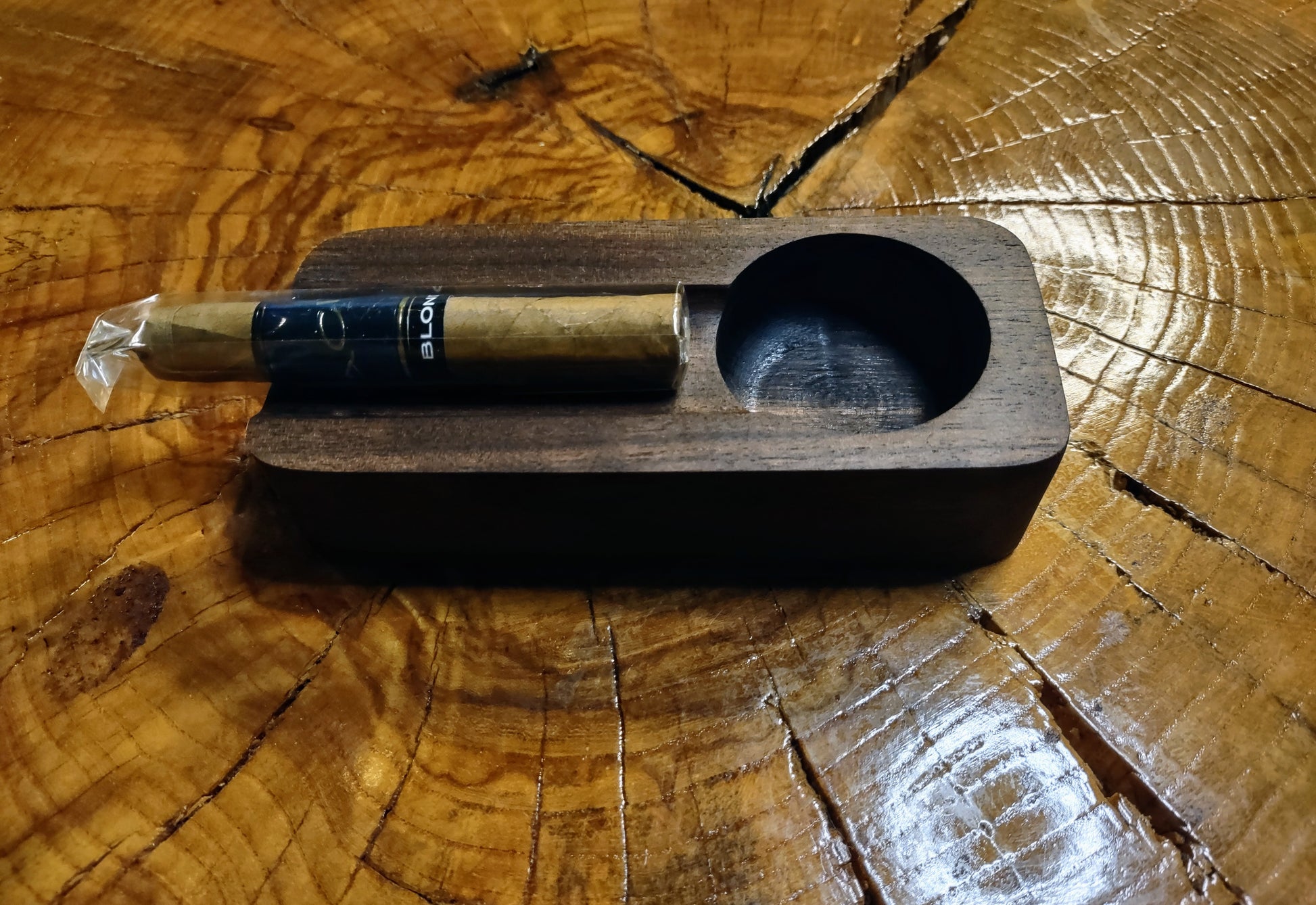 "The WS4 is a stunning addition to any home, boasting a small size and gorgeous chocolate hue. Made from walnut, this exquisite ashtray adds a touch of elegance to any space. Enjoy its rich color and sturdy construction, perfect for indulging in your favorite cigars or left-handers."