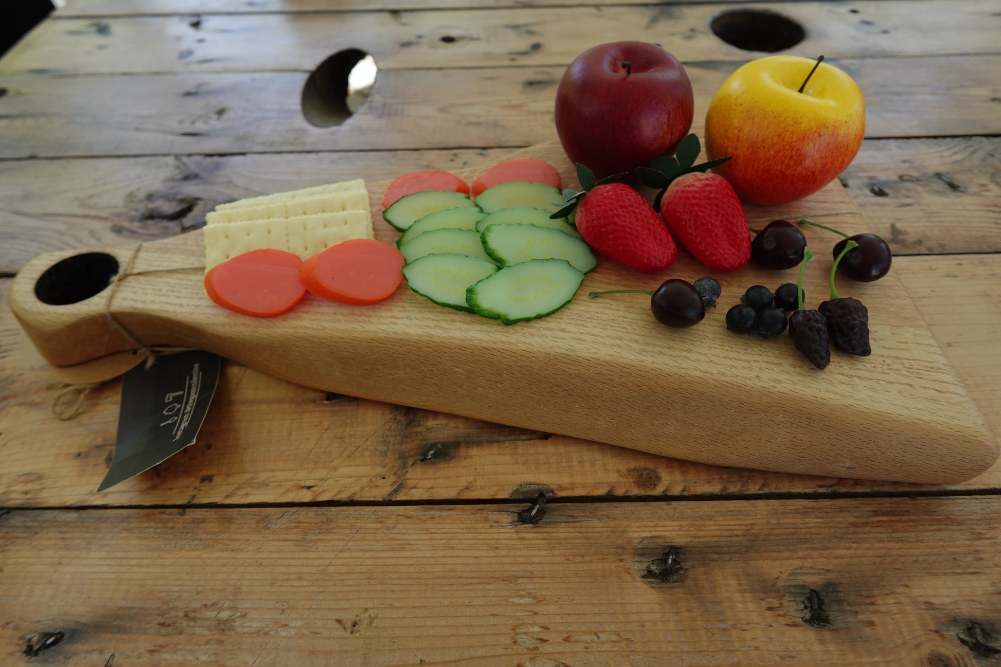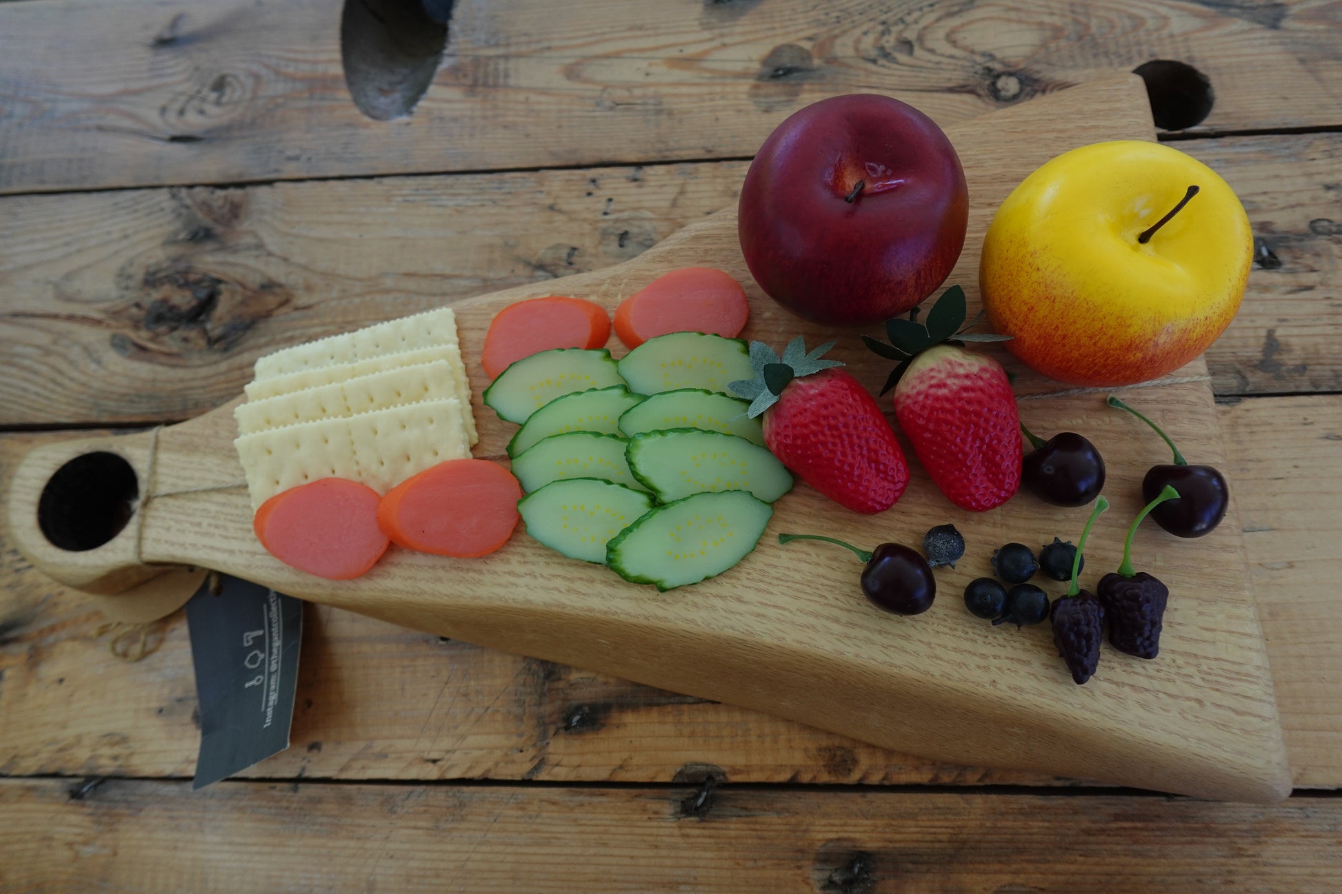 Behold the stunning XL Ash Charcuterie Board, expertly crafted from Indiana Ash. Its large handle makes it easy to showcase your spread with style. The eye-catching grain structure is sure to impress. With a food safe oil finish, this board is both functional and beautiful.